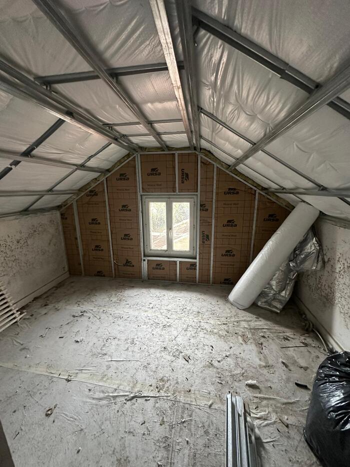 Nos équipes installent une isolation conforme au DTU 45.10, avec double couche croisée, sécurisation de la trappe d’accès et traitement complet des ponts thermiques.
